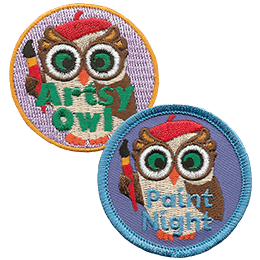 • A painting owl with two different texts: Artsy Owl and Paint Night.